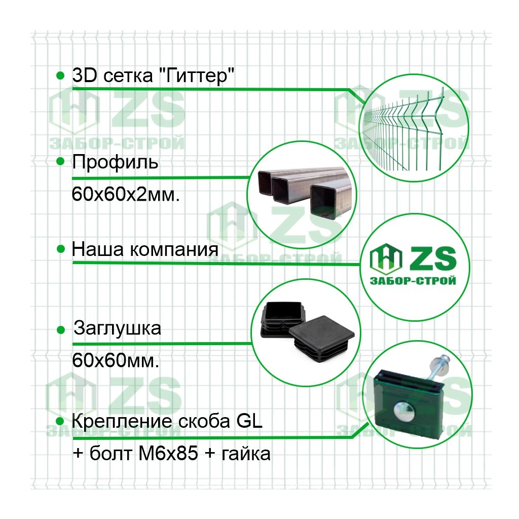 Сварной забор 3Д GL панели ячейка 200х55 (на оцинкованных столбах с покраской 65x55x1.4):